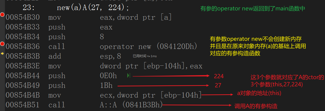 标准不允许直接用指针调用构造函数,但给出了另一种调用语法,可以在现有的对象的内存中调用构造函数,它不会分配新的内存。这也是没有对应的placement delete的原因。